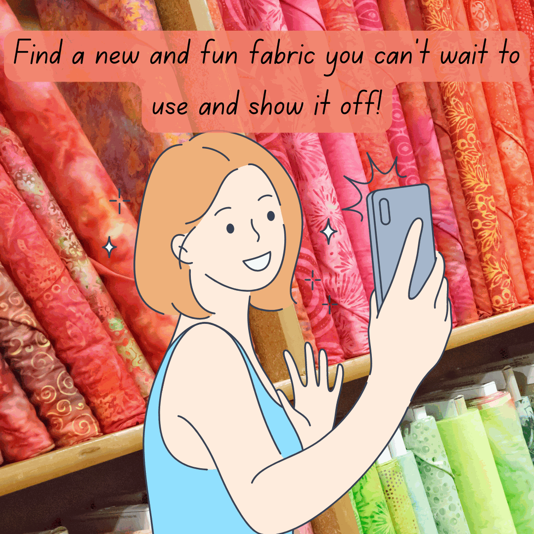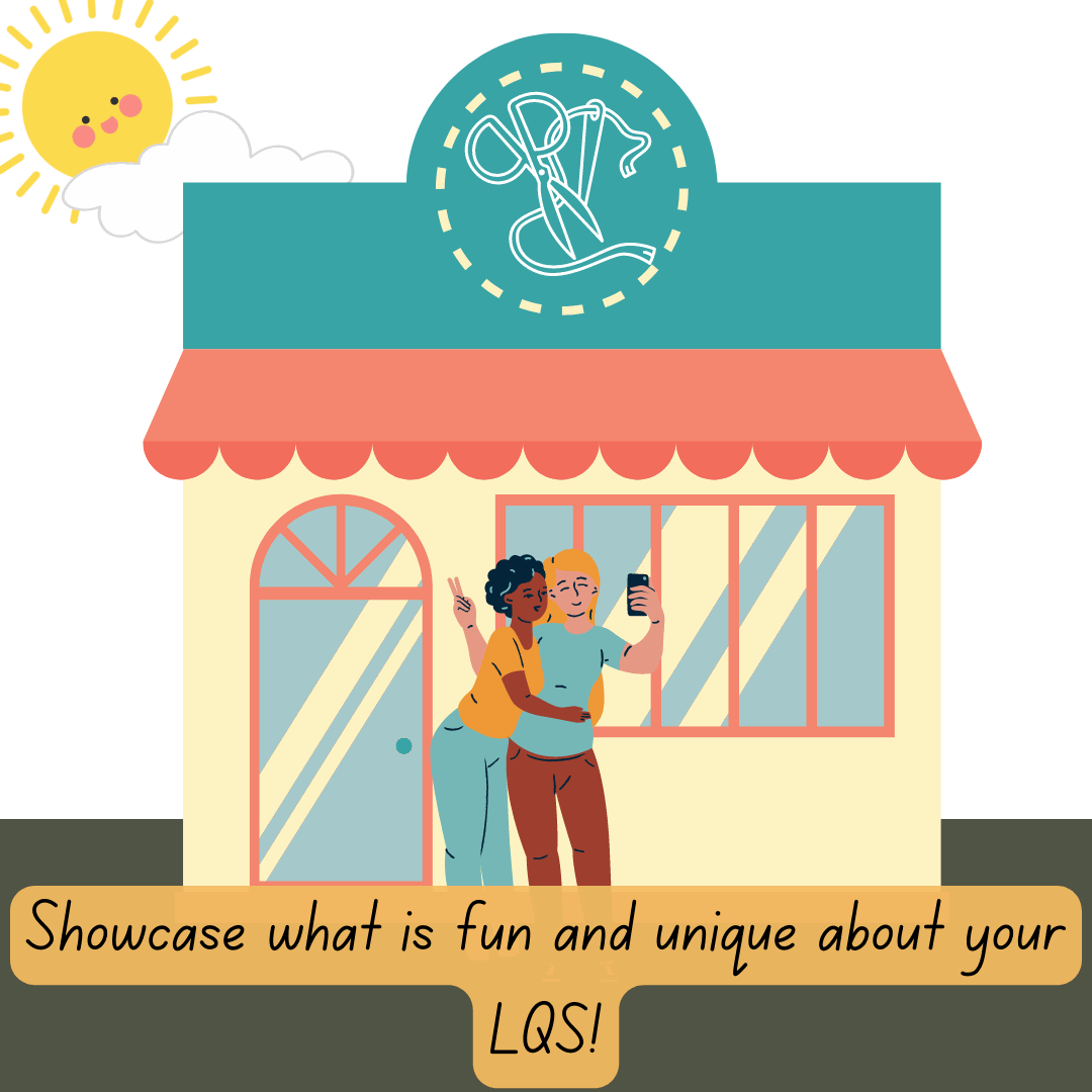 Have fun with it! You can take your picture inside or outside, a selfie or with a group of friends! Show off your favorite notions, fabrics, or with all your fun purchases and show your LQS love and pride!
